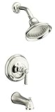 Finish/Color:Vibrant Polished Nickel, Handle:Metal, Configuration:1/2' NPT Connection Inspired by the traditional elegance of early 1900s American design, the Bancroft Suite by Kohler embodies a nostalgic aesthetic that achieves universal appeal for today's bathrooms.Carry the sophisticated style of the Bancroft collection through the bath or powder room with this shower/tub set.Rite-Temp pressure-balancing bath and shower trim only with diverter spout. Your choice of diverter spout with NPT or slip-fit connection; see options. Premium material construction for durability and reliability. Rite-Temp pressure-balancing technology maintains water temperature within +/-3 degrees F. High-temperature limit stop allows you to preset a comfortable maximum temperature to eliminate scalding. Kohler finishes resist corrosion and tarnishing, exceeding industry durability standards by over two times.Note: Trim only; requires Rite-Temp or High-Flow Rite-Temp valves, please see accessories.